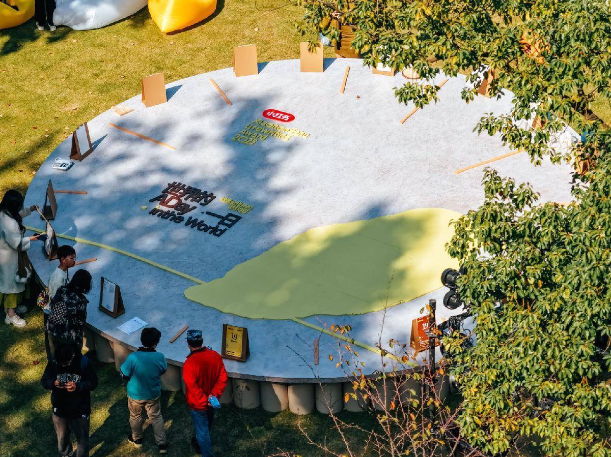 鲁迅公园的草坪上,一个直径 7 米的巨大“世界时钟”展示了世界各地的“一日”作品。居住在中国北京、上海、潮州、桂林、香港和美国、英国、法国、日本、乌干达等地的网友记录下同一天的生活,拼凑出一张“世界生活地图”。