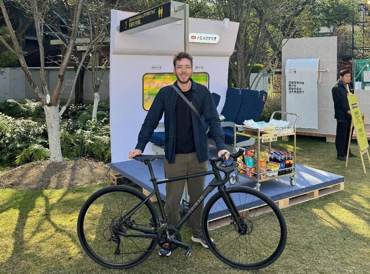 30岁的英国小伙儿Ben Silver 半年前从伦敦出发,骑行前往中国,并开始在小红书上发布他的骑行日记,其中一篇《比骑行万里更难的,是辞职离开那刻》入围本届身边写作大赛。当天,Ben Silver骑车抵达鲁迅公园,被网友称为“有史以来最松弛的文学奖得主”。